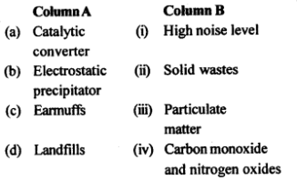 (iv)Developing substitutes for chlorofluorocar- bons. - Match the items given in column A and B: