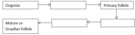 Q.9. Fill in the missing boxes for the levels in the transformation of mother germ cells into a mature follicle.