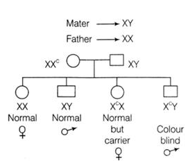 Q.1. A colour-blind father has a daughter with normal vision. The daughter marries a man with a normal vision. What is the probability of her children to be colour blind? Explain with the help of a pedigree chart.
